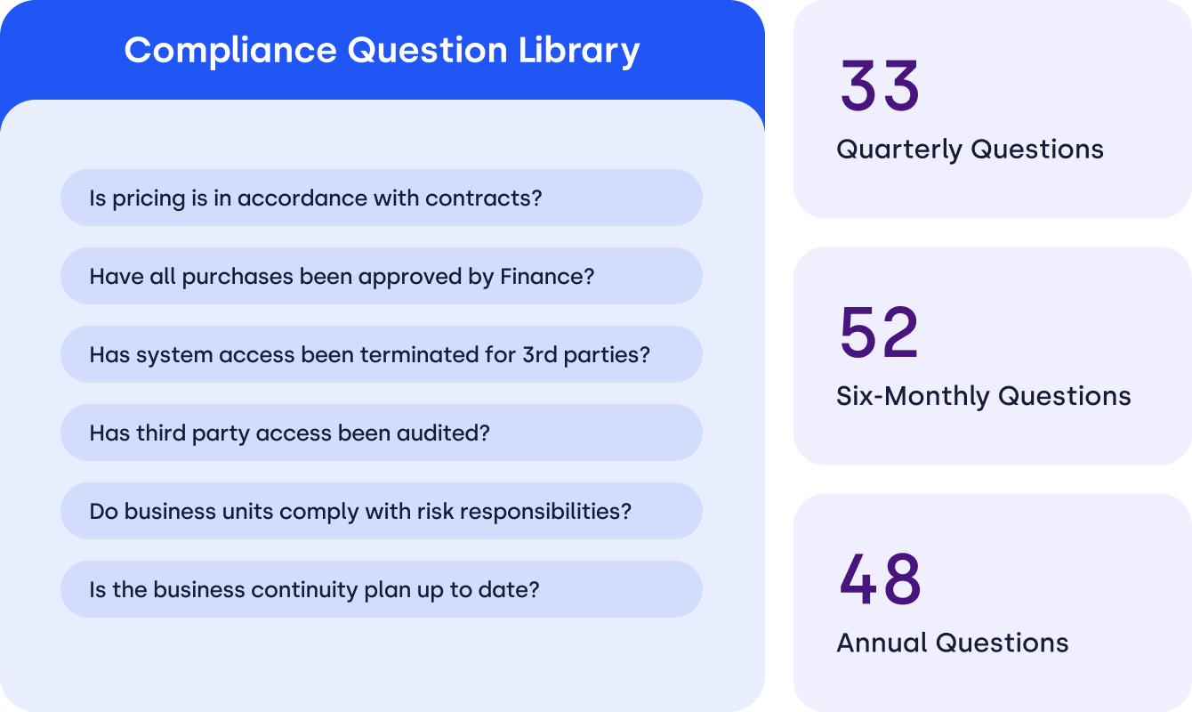Manual evidence gathering across documents and emails - error-prone and stressful. | Pre-configured, auditable registers with one-click reporting and timestamped compliance evidence. | ||